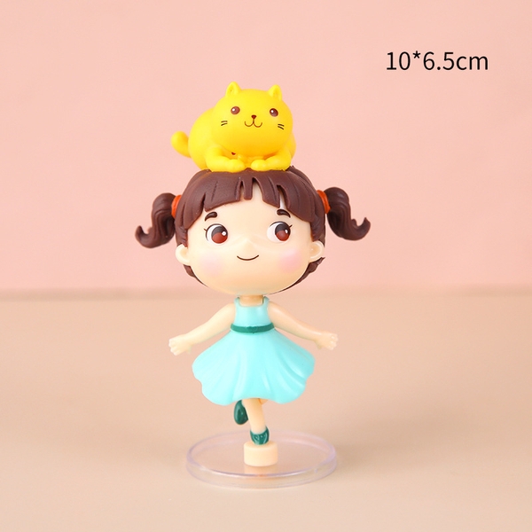 Bé gái váy xanh đội mèo vàng
