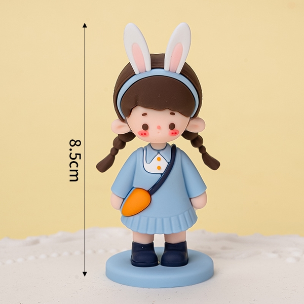 Bé gái váy xanh túi cam bờm thỏ