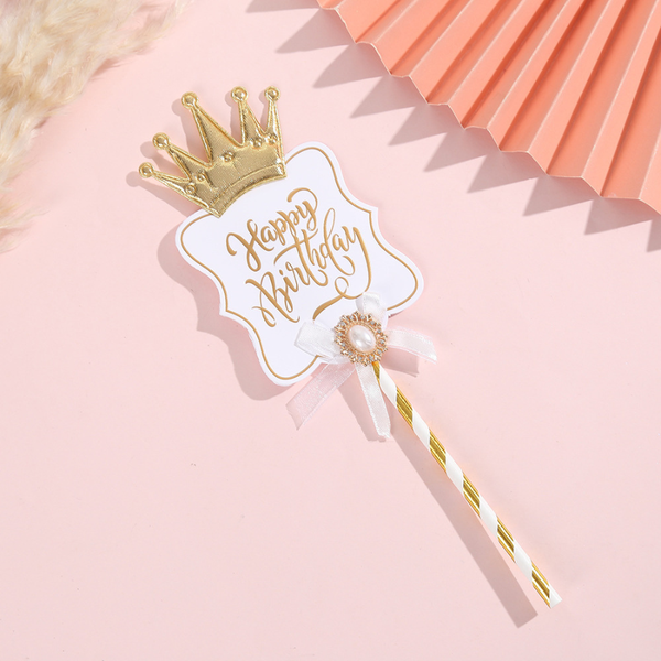 Biển hiệu HPBD Trắng Vương miện TO + Ngọc trai Nơ