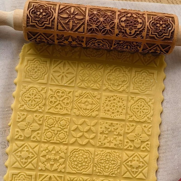 Cán bột gỗ in hoa văn size 35cm mã 47