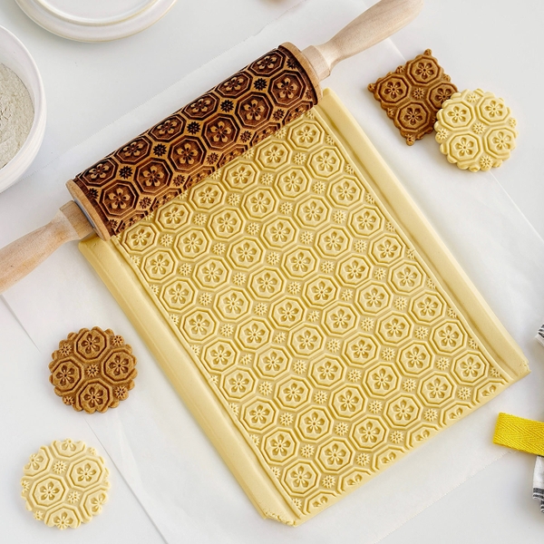 Cán bột gỗ in hoa văn size 35cm mã 49