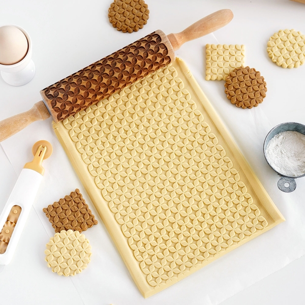 Cán bột gỗ in hoa văn size 35cm mã 50