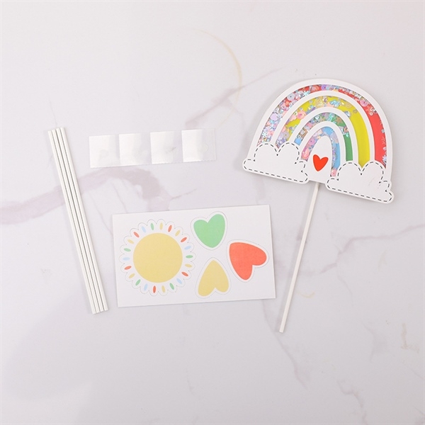 Set que cắm cầu vồng kim tuyến+tim+mặt trời ĐỎ