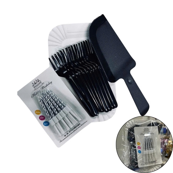 Dao dĩa đen 10p kèm nến màu bạc
