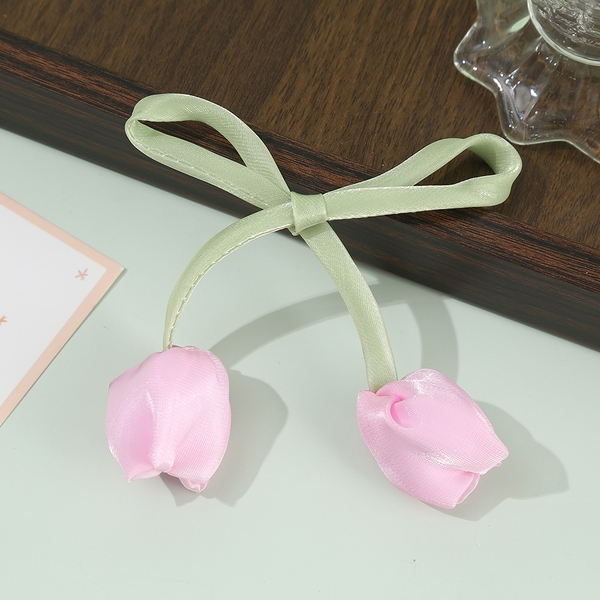 Dây hoa tuylip vải làm nơ màu hồng