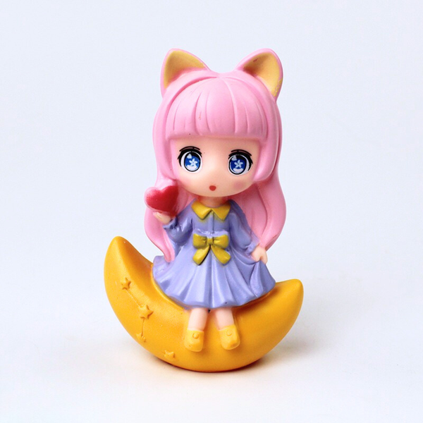Đồ chơi bé gái tóc hồng ngồi trăng vàng