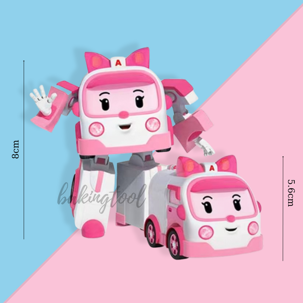 Đồ chơi trang trí xe Cảnh sát biến hình HỒNG + TRẮNG