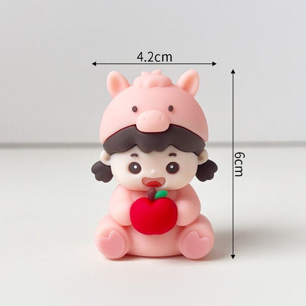Kute bé ngựa hồng ngồi ôm quả táo
