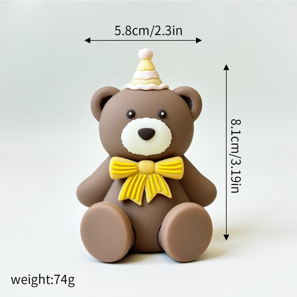 Kute gấu ngồi màu nâu đậm nơ vàng mũ vàng (8,1cm)