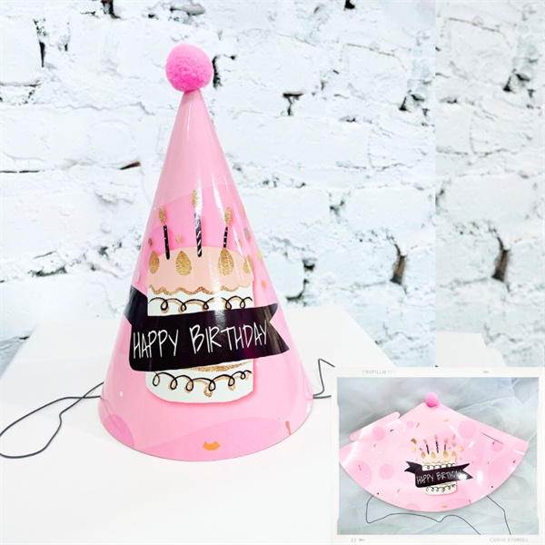 Mũ sinh nhật giấy bông chóp HỒNG (SET 10C)