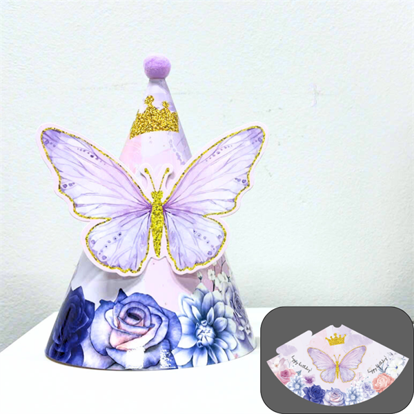 Mũ sinh nhật giấy-bướm giấy TÍM( 10 mũ )