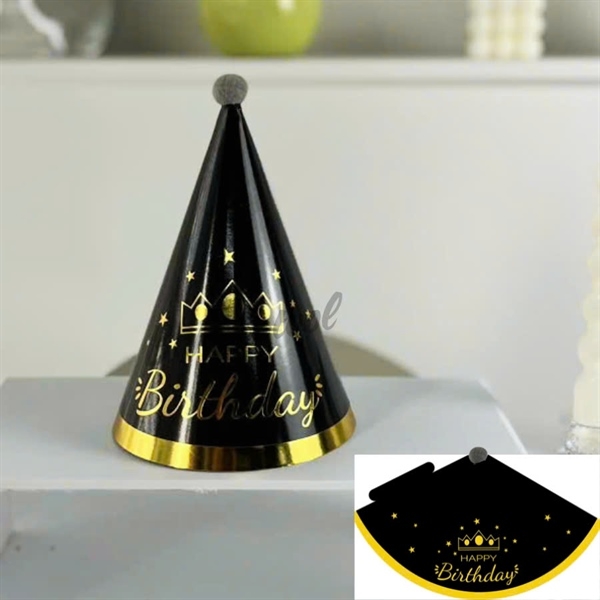 Mũ sinh nhật giấy chóp bông ÉP NHŨ VÀNG ĐEN ( 10 mũ)