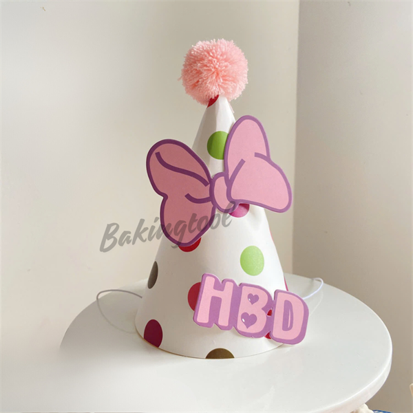 Mũ sinh nhật giấy-Chóp bông siêu to HBD chấm bị TRẮNG (10 mũ)