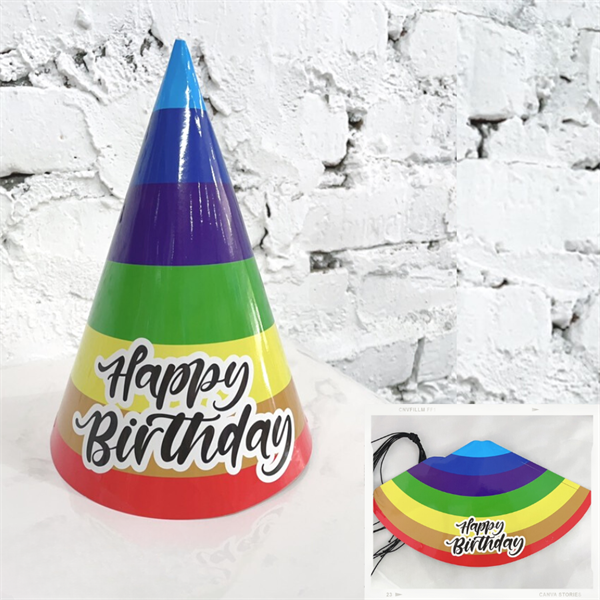Mũ sinh nhật giấy-hpbd 7 sắc cầu vồng Bóng (10 mũ)