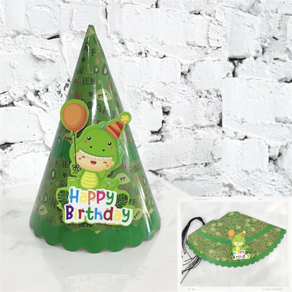 Mũ sinh nhật giấy-khủng long xanh (10mũ)