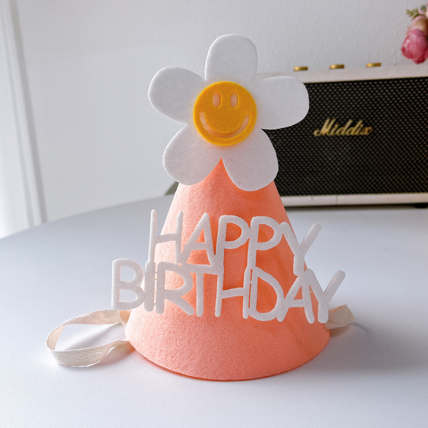 Mũ sinh nhật vải cho bé màu HỒNG CAM HOA TRẮNG