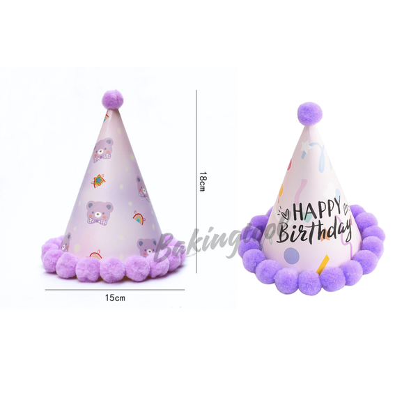 Mũ sinh nhật viền bông màu TÍM (mã to)