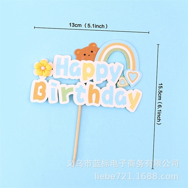 Que cắm chữ HPBD CẦU VỒNG+ HOA, GẤU chữ màu XANH
