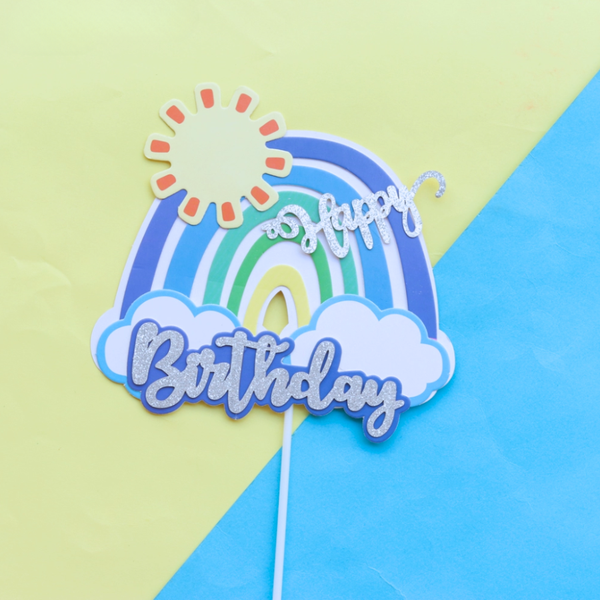 Que cắm HPBD mặt trời cầu vồng cầu vồng XANH nhũ bạc