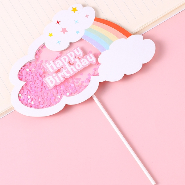 Que cắm Hpbd mây + cầu vồng kim tuyến Hồng