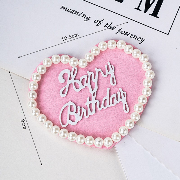 Que cắm HPBD trái tim HỒNG gắn Ngọc Trai
