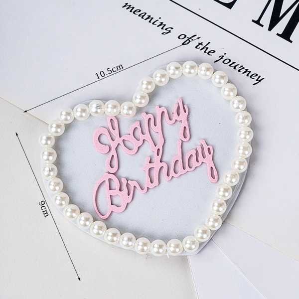 Que cắm HPBD trái tim trắng gắn Ngọc Trai
