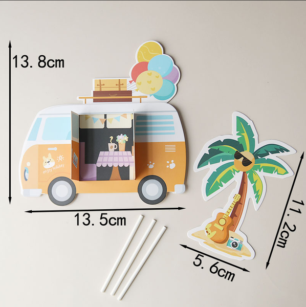 Que cắm Xe oto giấy+chùm bóng+cây dừa