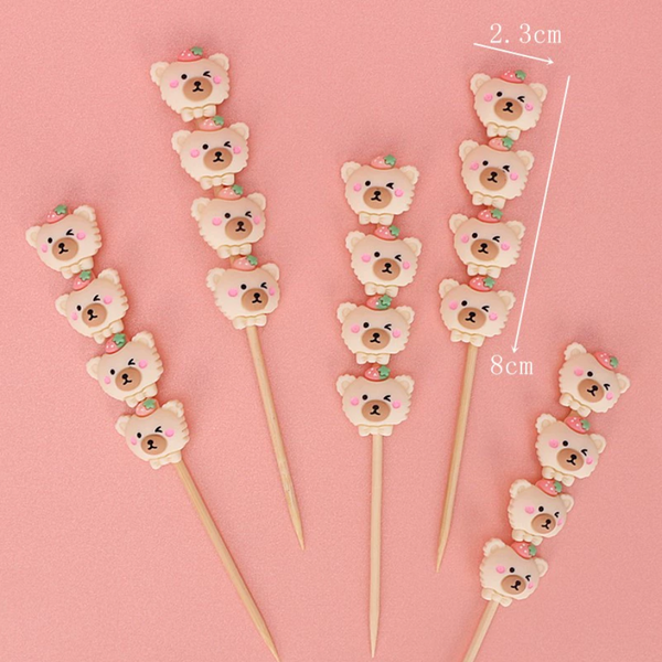 Que kute hồ lô GẤU VÀNG đội DÂU TÂY (1que)