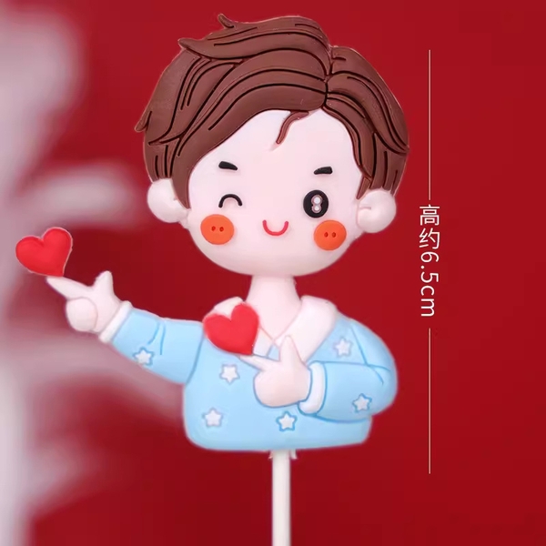 Que kute nhựa bé trai áo xanh+trái tim