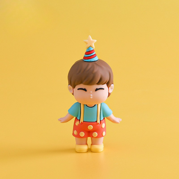 Que kute SLC BÉ TRAI ÁO XANH QUẦN CHẤM BI ĐỘI MŨ SINH NHẬT