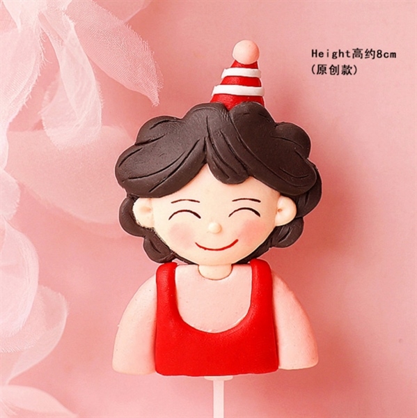 Que kute slc MẸ ÁO ĐỎ tóc nâu đội mũ sinh nhật bông trắng