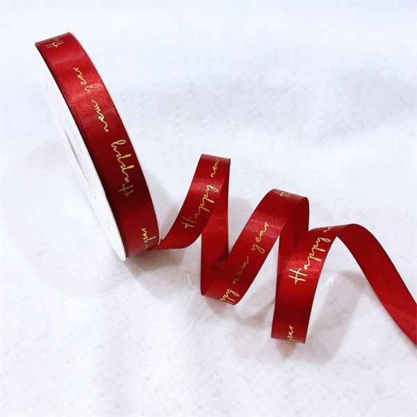 RB lụa HPNY ĐỎ ĐÔ CHỮ NHŨ VÀNG nét mảnh 1,5cm*50m