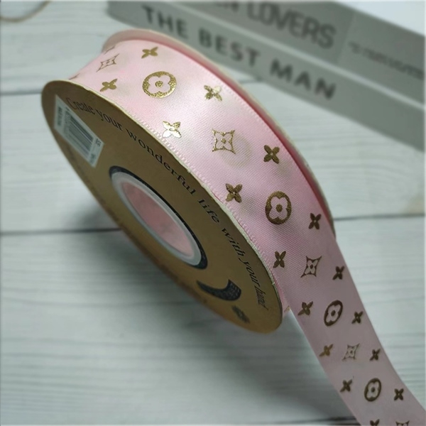 RB LV họa tiết ép nhũ VÀNG màu HỒNG TƯƠI khổ 2,5cm