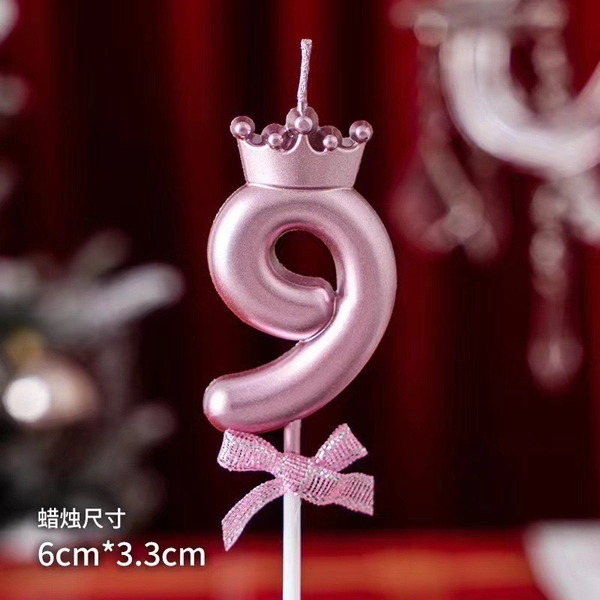 Set 10 nến số vương miện hồng số 9