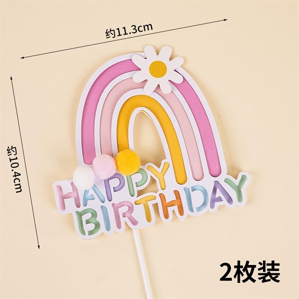 Set 2 que cắm HPBD 2 lớp cầu vồng Bông + hoa màu HỒNG