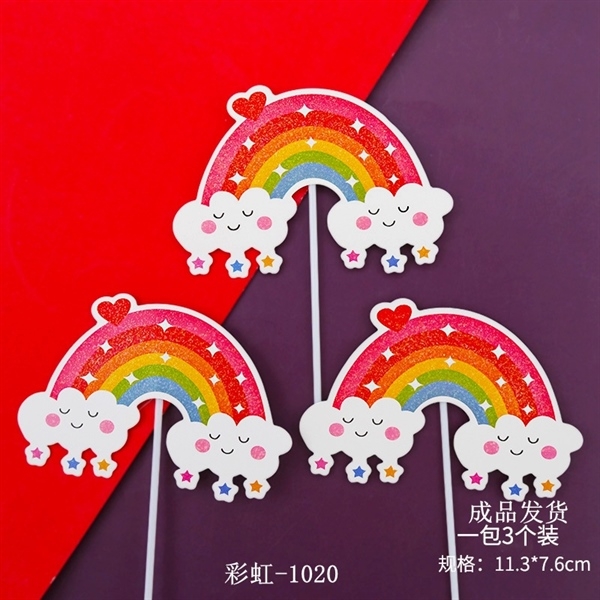 Set 3 Que cắm CẦU VỒNG + TIM nhũ ĐỎ, MÂY TRẮNG