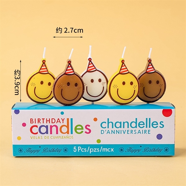 Set 5 nến mặt cười đội mũ VÀNG, TRẮNG, NÂU mới (vỉ)