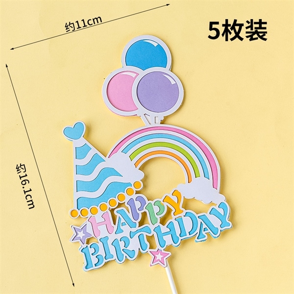 Set 5 que cắm 2 lớp HPBD CẦU VỒNG + CHÙM BÓNG MŨ SINH NHẬT xanh