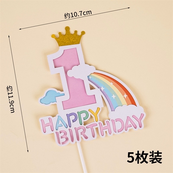 Set 5 Que cắm 2 lớp HPBD số 1 + cầu vồng vương miện HỒNG