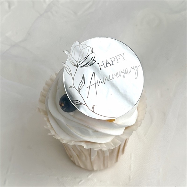 Set 5 TAG Topper mica tròn HAPPY Anniversary BẠC