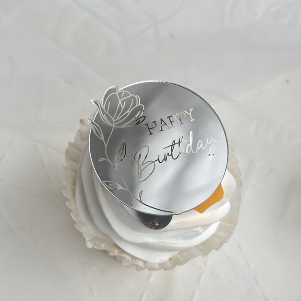 Set 5 TAG Topper mica tròn HAPPY Birthday BẠC