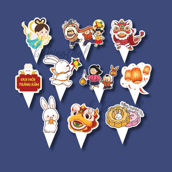 Set cắm giấy TT - 20 TAG cupcake lân + thỏ