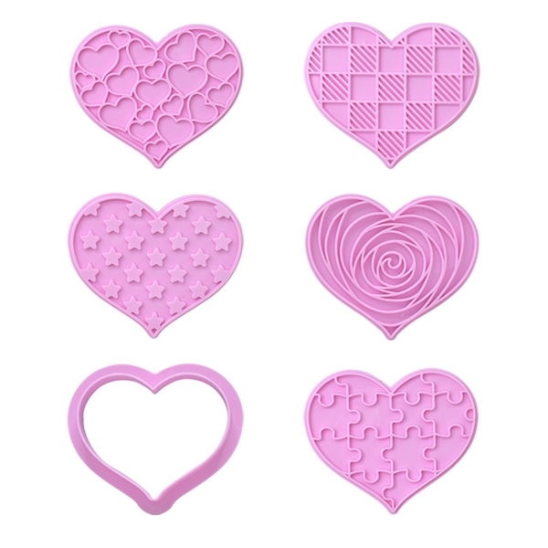 Set khuôn nhấn 6 tim mix họa tiết màu HỒNG