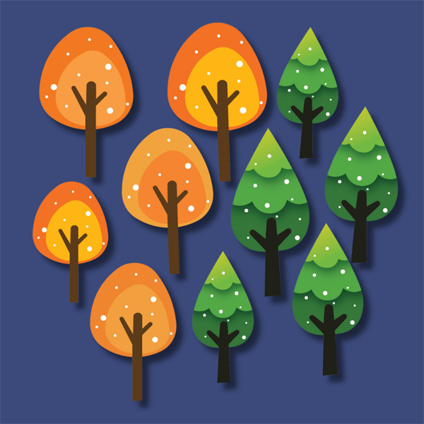 Set que giấy-14 cây xanh +cây cam TUYẾT