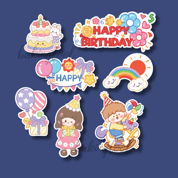 Set que giấy - HPBD bé trai gái hộp quà + bánh sinh nhật