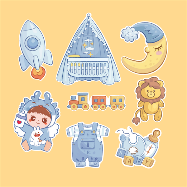Set que giấy Bé Trai RỒNG ôm bình sữa phụ kiện XANH (combo2)