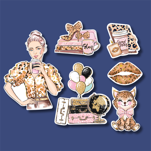 Set que giấy Cô gái phụ kiện + Mèo + Môi (combo2)