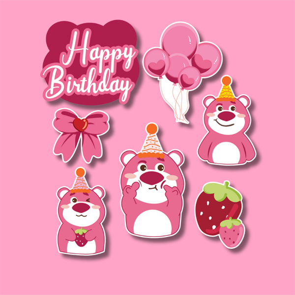 Set que giấy - GẤU LOTSO dâu tây + bóng bay (combo2)