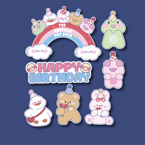 Set que giấy HPBD cầu vồng + 5 con thú sắc màu (combo2