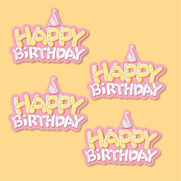 Set Que giấy HPBD chữ vàng chữ trắng nền hồng - 4 que